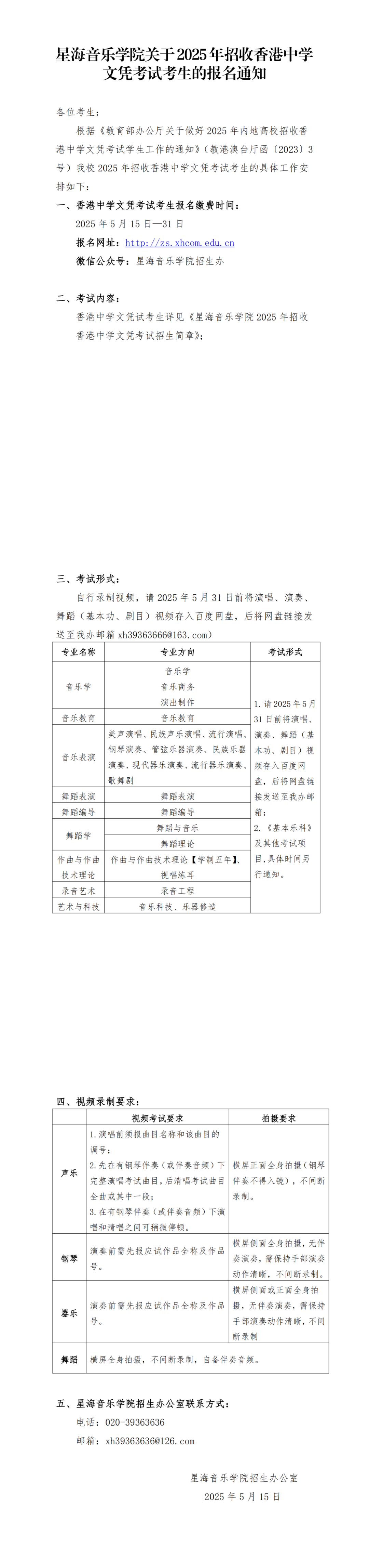 星海音乐学院关于2025年招收香港中学文凭考试考生的报名通知