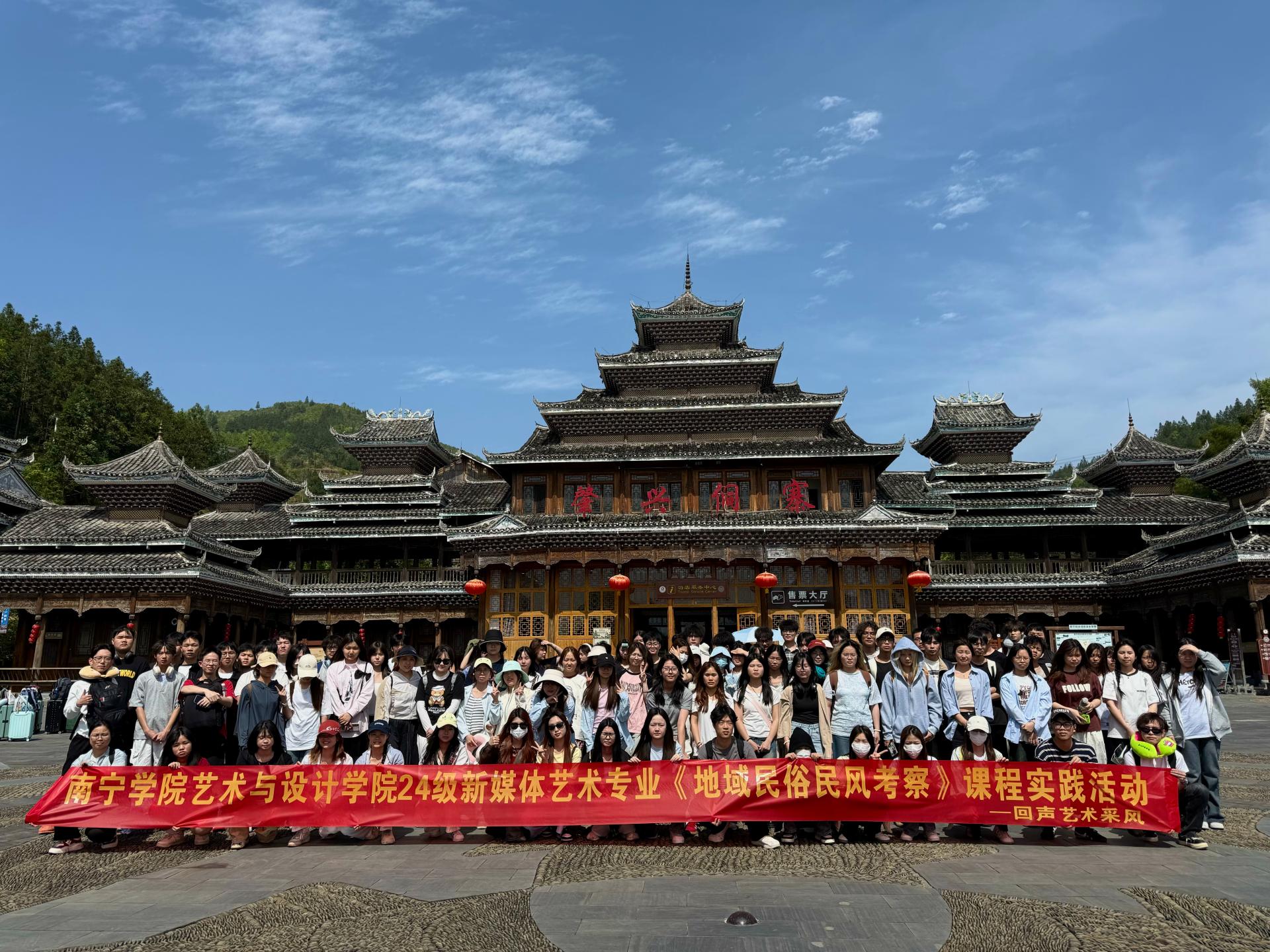 为贯彻我校服务地方的办学宗旨,提升学生对本土文化的认知与实践能力,2024年4月16日至23日,艺术与设计学院新媒体专业107名学生在邓琪艺、王晓珍、关莹莹三位老师的带领下,赴肇兴侗寨与程阳八寨开展为期8天的《地域民俗民风考察》课程实践活动。