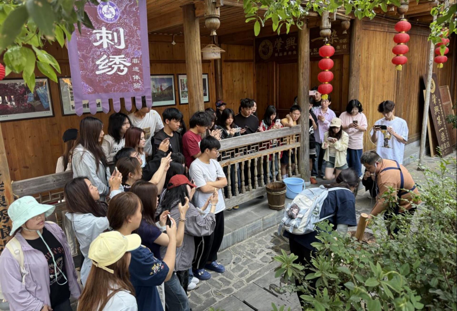 通过亲身体验侗族独特的文化和民俗,帮助学生深入理解和感知地域文化的多样性与独特魅力。活动内容丰富多彩,既有传统工艺的学习,如打糍粑、侗族扎染、刺绣、炒茶等手工技艺的传授,也有生动的民俗体验,如谷雨节游街、非物质文化遗产木构建筑参观讲解、侗族农民画创作、民俗表演、百家宴等。学生们积极参与其中,切身感受到民族文化的传承与创新。