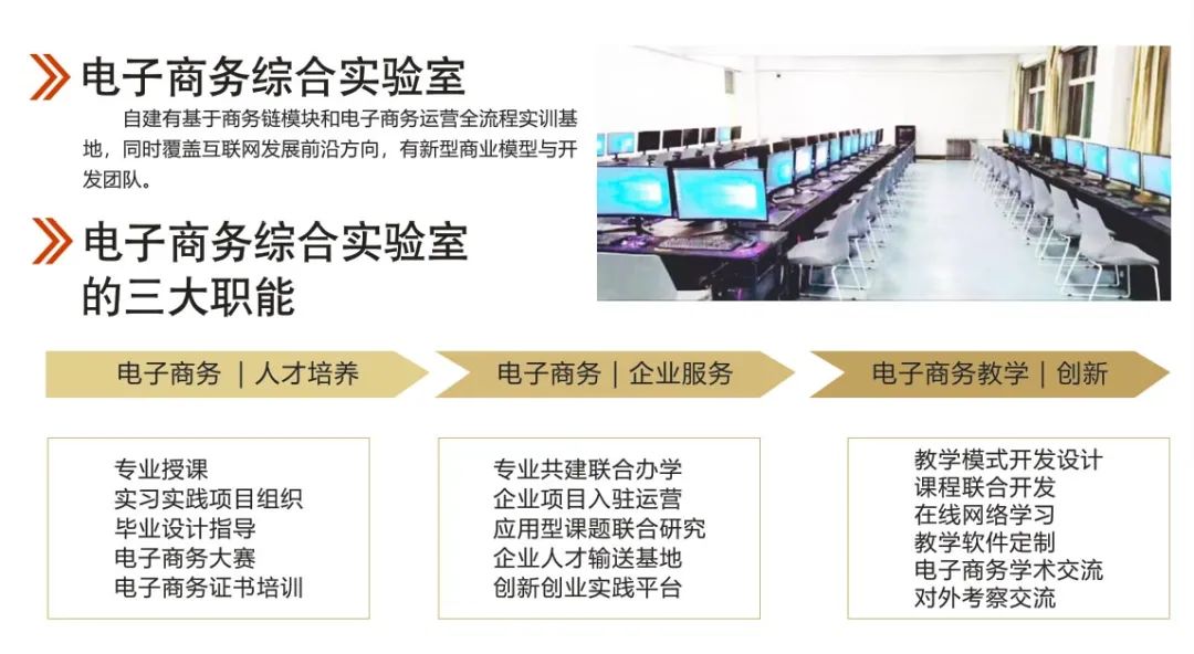 四、电子商务专业介绍:电子商务专业(B2B)是融计算机科学、市场营销学、管理学、经济学、法学和现代物流于一体的新型交叉学科。培养掌握计算机信息技术、市场营销、国际贸易、管理、法律和现代物流的基本理论及基础知识,具有利用网络开展商务活动的能力和利用计算机信息技术、现代物流方法改善企业管理方法,提高企业管理水平能力的创新型复合型电子商务高级专门人才。