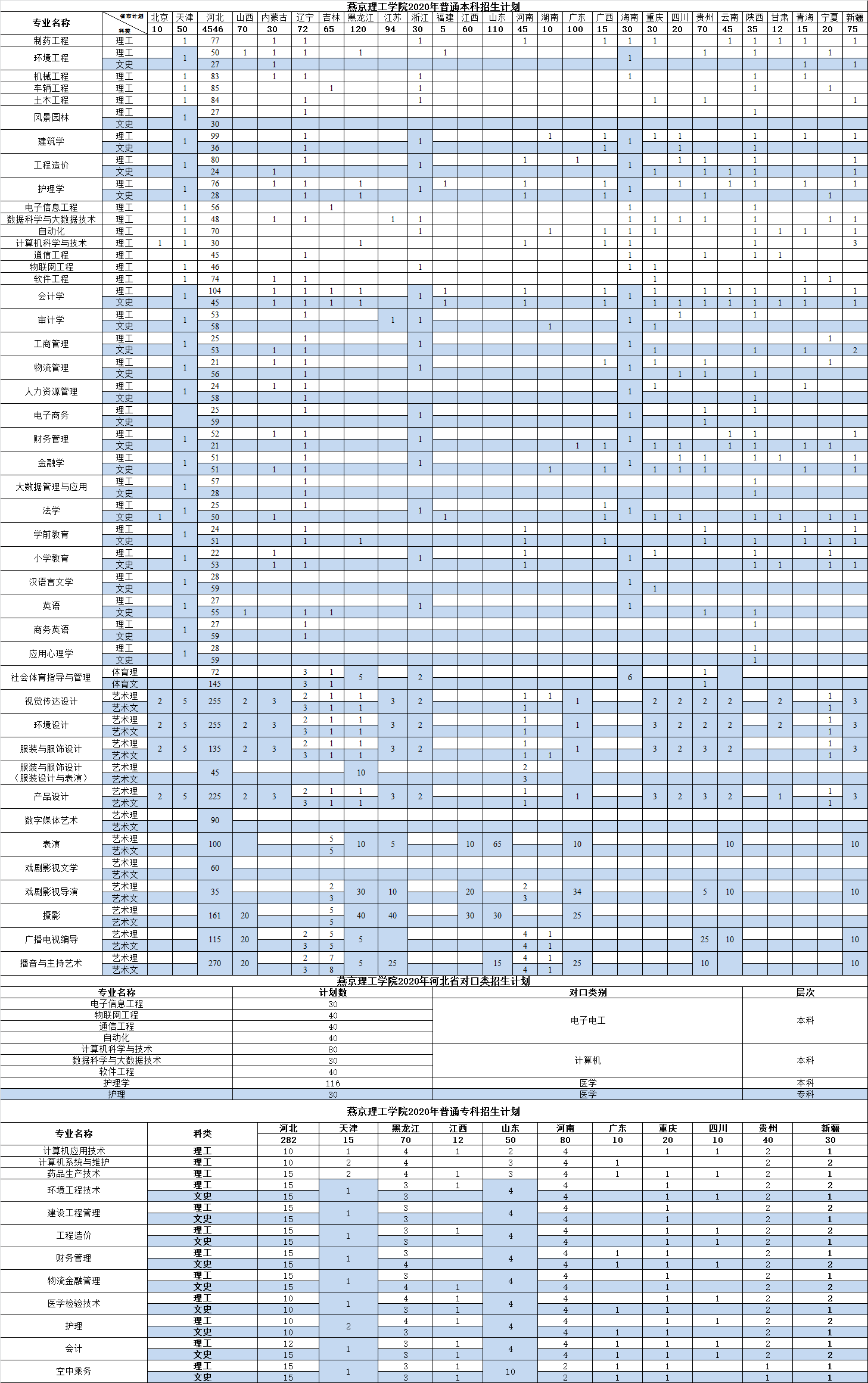 2020年燕京理工学院招生计划