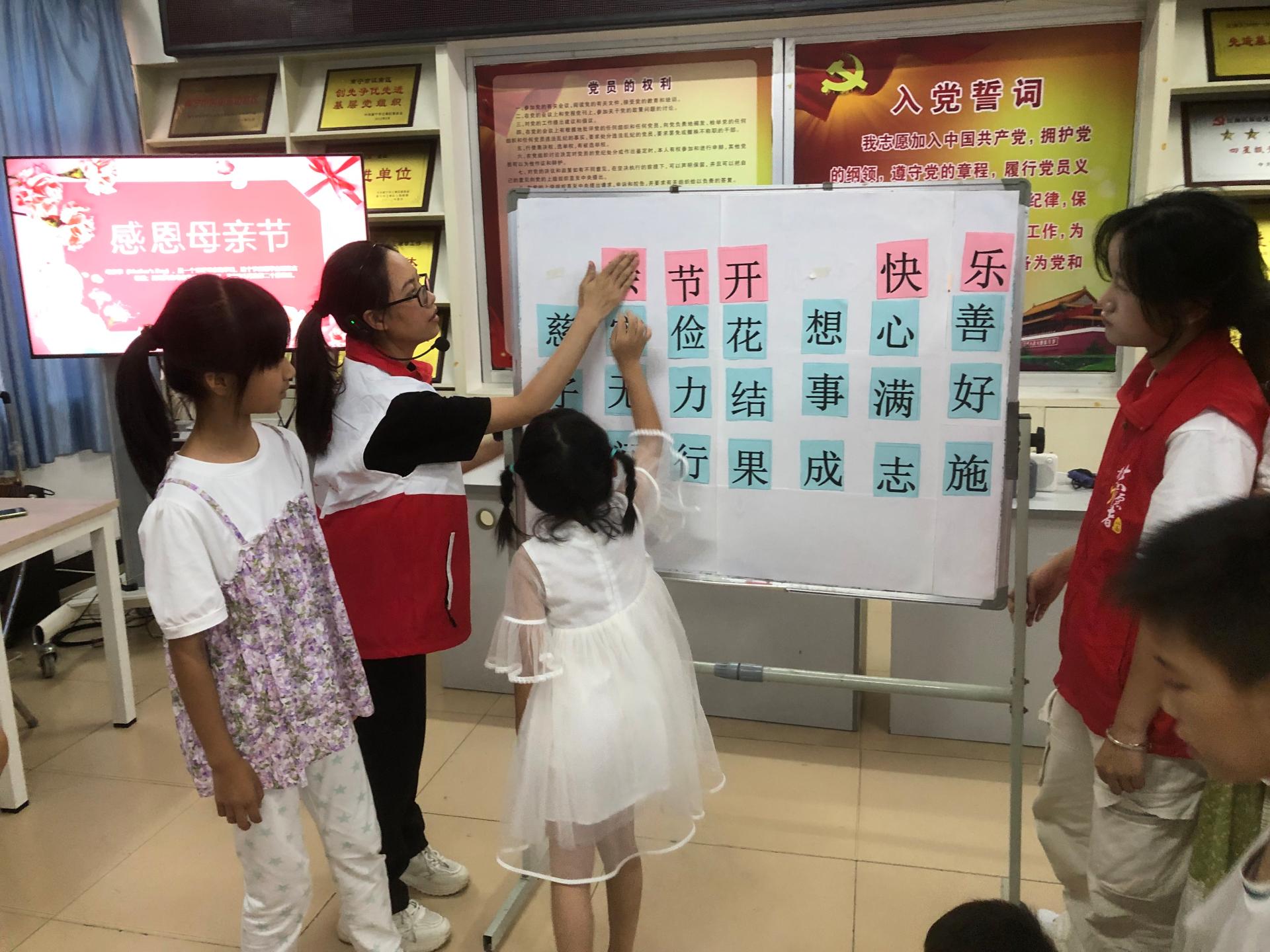 活动尾声,社区特别设置“母亲节贴成语挑战”活动,大家开启头脑风暴,将小球滚动到的字粘贴在对应的成语板上,板上的词语最后汇成了一句“母亲节开心快乐!”。大家的笑脸在一句句“祝妈妈母亲节快乐!”中定格。