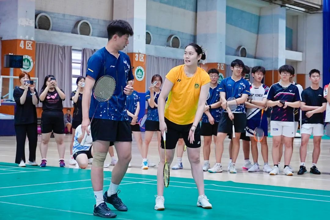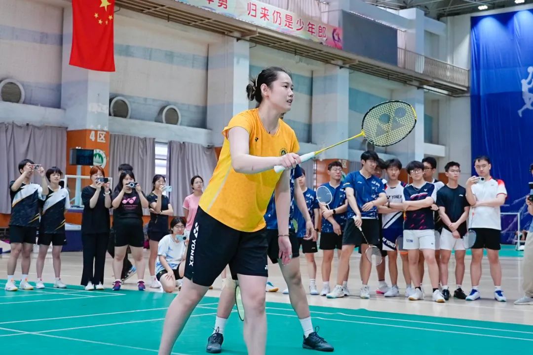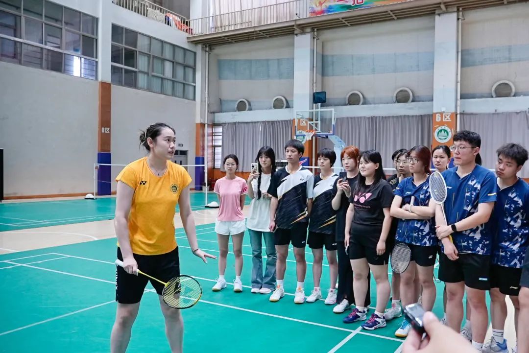 揭牌仪式结束后,郑雨在岱宗校区羽毛球馆内开讲了首堂公开课。“杀球不是靠蛮力”“打得每一球都要扎实”“要与队友打配合”……公开课上,郑雨与学生代表进行对打,在实战中她针对学生们的后场进攻、杀球技术等方面进行了细致入微的指导。“郑老师的课太精彩了,她在球场上认真专注、全力以赴、努力拼搏的精神令人钦佩,我要以她为榜样,强健体魄、坚韧意志、扎实学业,以昂扬的精神走好我的奋进之路。”植保学院学生贺锦林接受记者采访时说。
