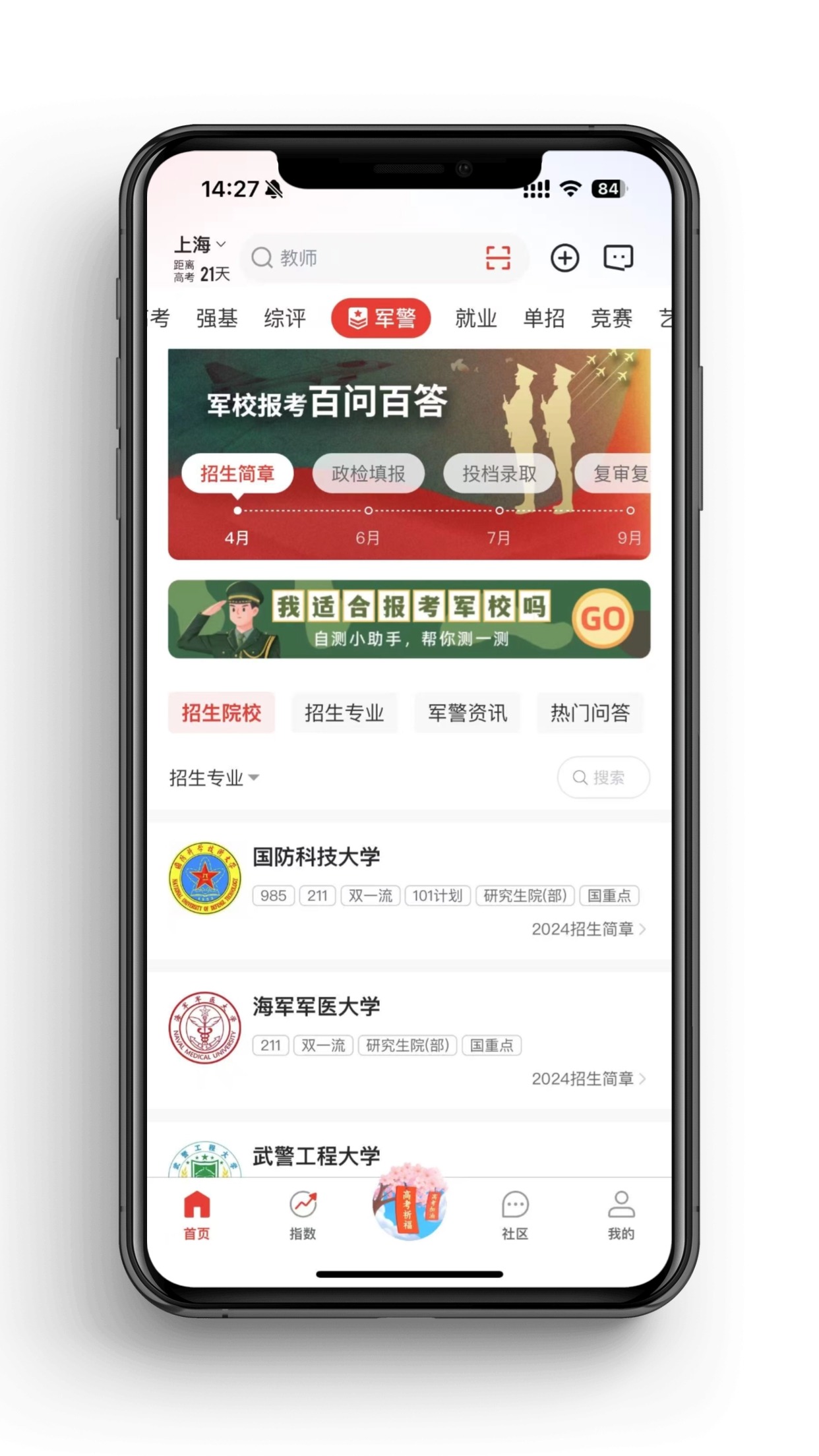 2、关注招生政策:密切关注各高校发布的招生政策,包括招生计划、体检标准、政审要求等。不同专业可能对考生的身体条件、单科成绩等有不同要求,提前了解这些信息,才能确保自己符合报考条件,避免出现遗憾。想要了解更多军校资讯,可点击优志愿【军警】专栏,即可解锁更多院校的详细信息。