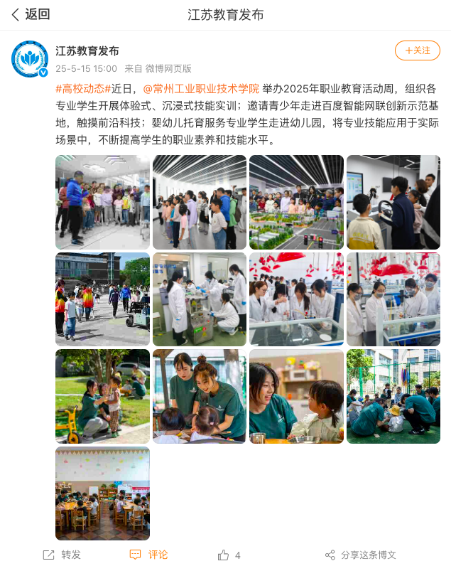 江苏教育发布:#高校动态#近日,常州工业职业技术学院举办2025年职业教育活动周