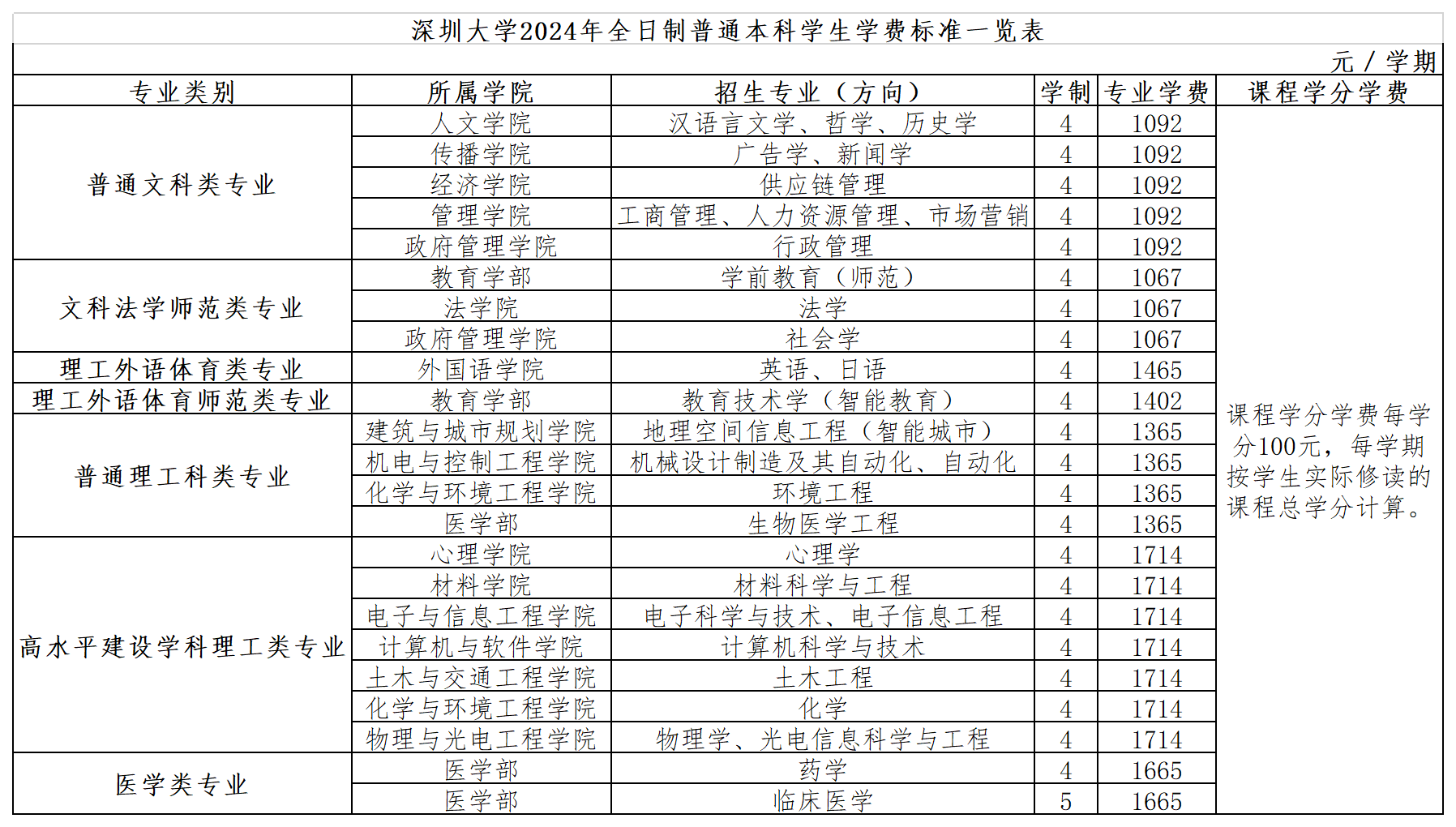 以上收费和学生在校学习期间发生的其他费用均以深圳市物价部门最新核定批准数为准。