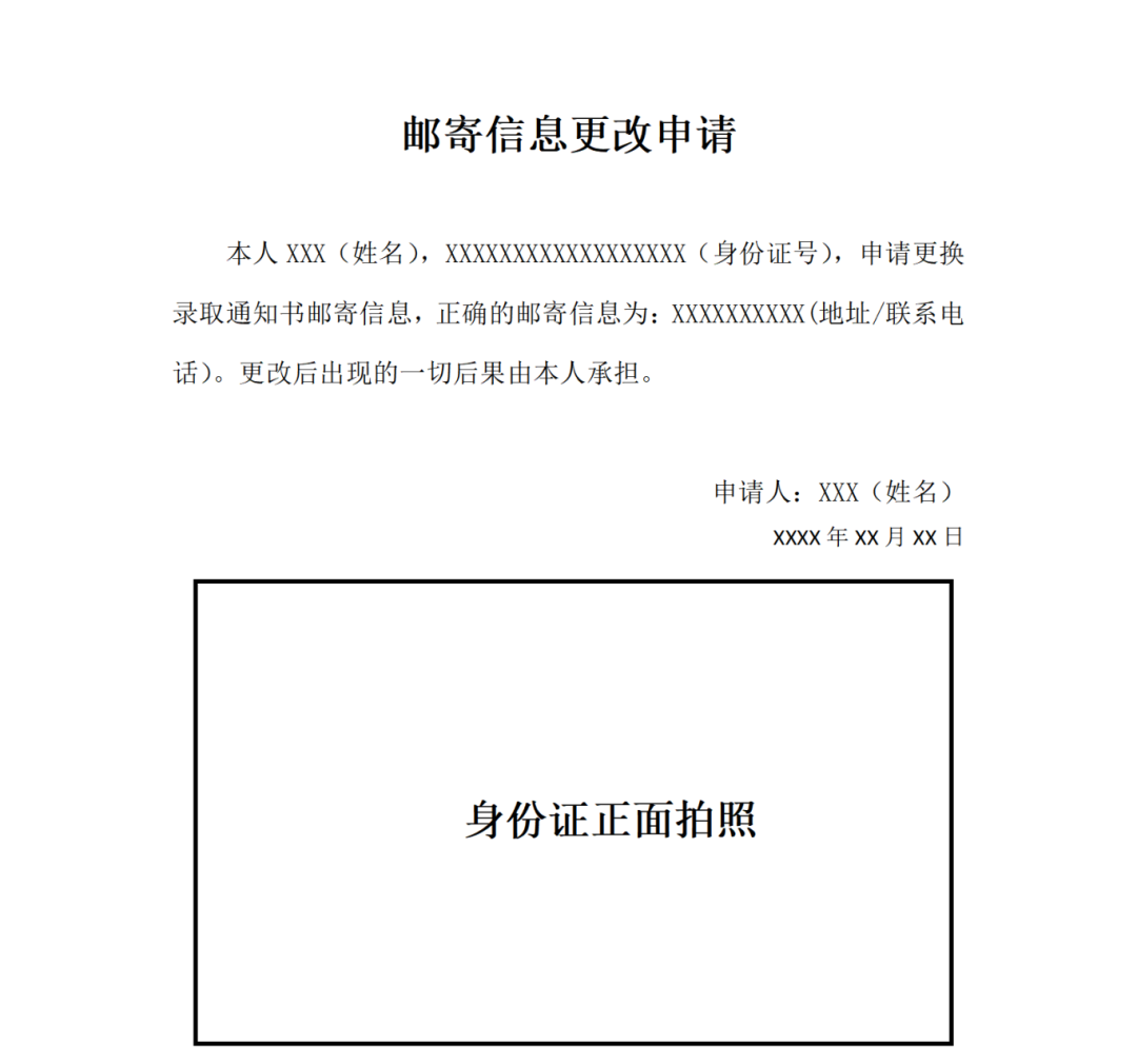 以下是参考模板,请手写申请并签字,放上身份证正面,然后拍照(图片清晰可见信息)。