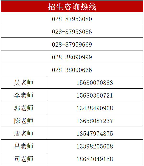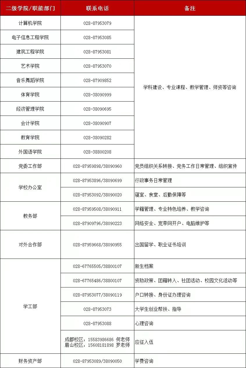 (1)成都校区:四川省成都市郫都区团结街道学院街65号,电话028-67765505,邮编:611745