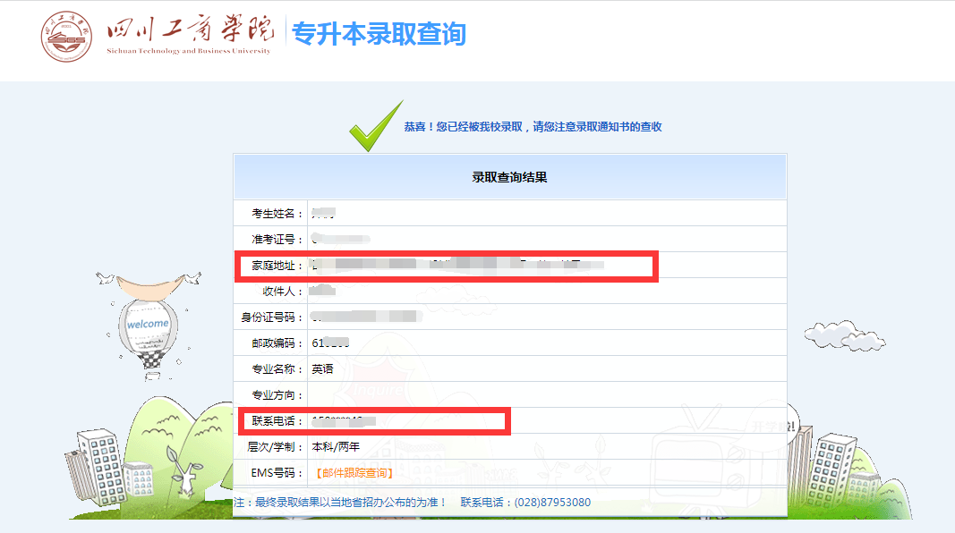 请新生务必登录四川工商学院招生信息网专升本录取查询界面(https://gkcx.stbu.edu.cn/)核对通知书收件地址、收件人及联系电话,以确保通知书顺利寄达。
