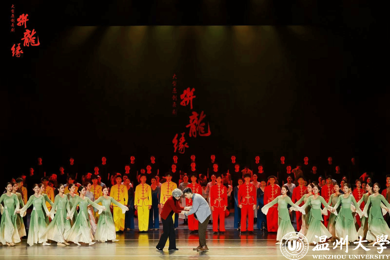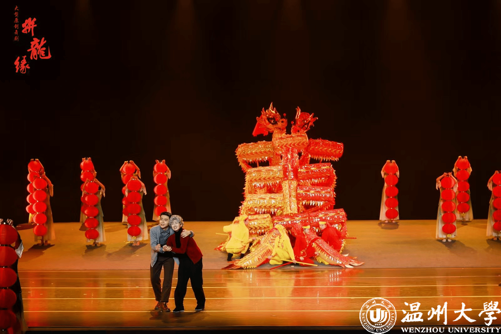 5月15日晚上,由龙湾区委宣传部、龙湾区文联与温州大学音乐学院联合打造的温州首部以非遗文化为题材的原创舞剧《拼龙缘》在温州大学育英大礼堂正式首演。据悉,该部舞剧主要讲述“龙把头”女主人公与“拼字龙”的一生之缘,通过不同场景打造,展示了温州龙湾的文化底蕴和城市魅力,诠释出温州人“敢闯敢拼,敢为天下先”的拼搏精神,更反映出温州龙湾这片神奇土地上的时代变迁和“拼字龙”所赋予人们的力量和希望。