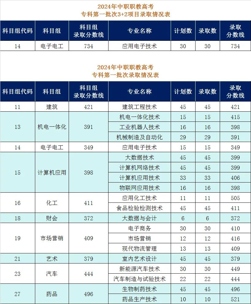 | 14 | 电子电工 | 应用电子技术 | 30 | 三年 | 5300 |