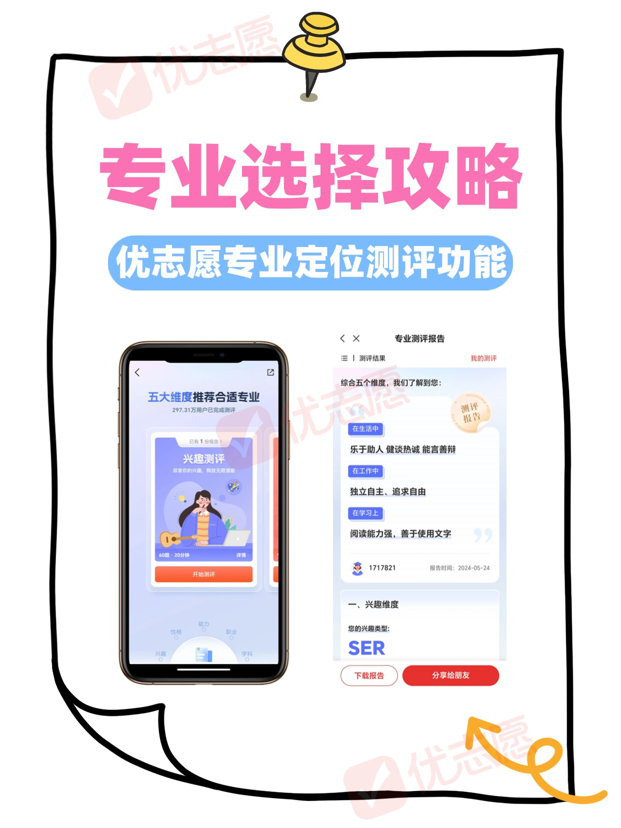 专业决定了大学要学什么知识和技能,选得好,学习更有劲头,未来就业或升学也更顺利。那高中生该如何选择专业呢?可以从以下五个维度考虑。推荐使用优志愿app-【专业定位测评】功能,从五大维度深入解析,科学规划未来职业发展方向,推荐适合的大学专业!