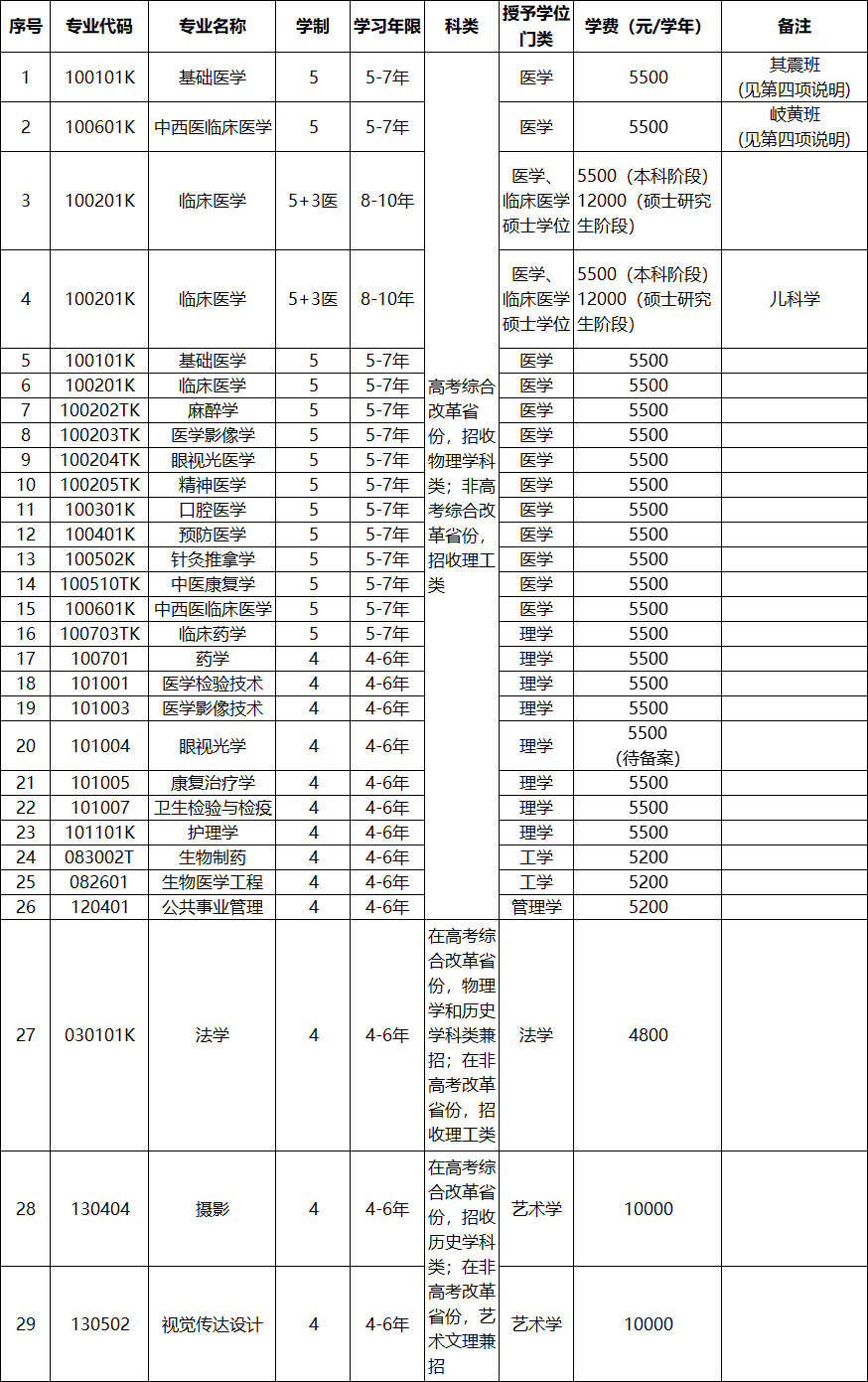 备注:招生专业以各省份招生考试部门公布的招生计划为准。专业学费标准若有变化,以辽宁省教育厅备案学费为准。