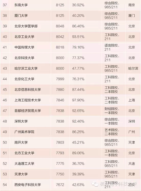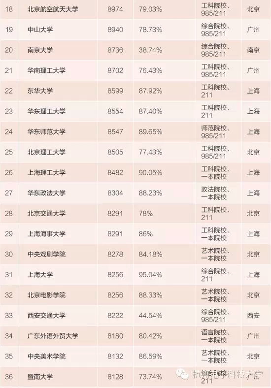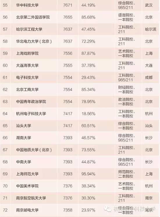 我省共有4所高校入围百强排行榜。其它3所高校分别是:浙江大学(排名第12)、中国美术学院(排名第70)、浙江财经大学(排名第95)。