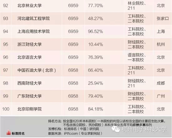 近日,标准排名(中国)研究院基于专业求职网站iPIN.com上全国620所本科院校的数据,编制完成《2015中国高校毕业生薪酬排行榜》,公布了本科毕业生薪水最高的100所大学。我校排名第64位,在浙江省内名列第2。