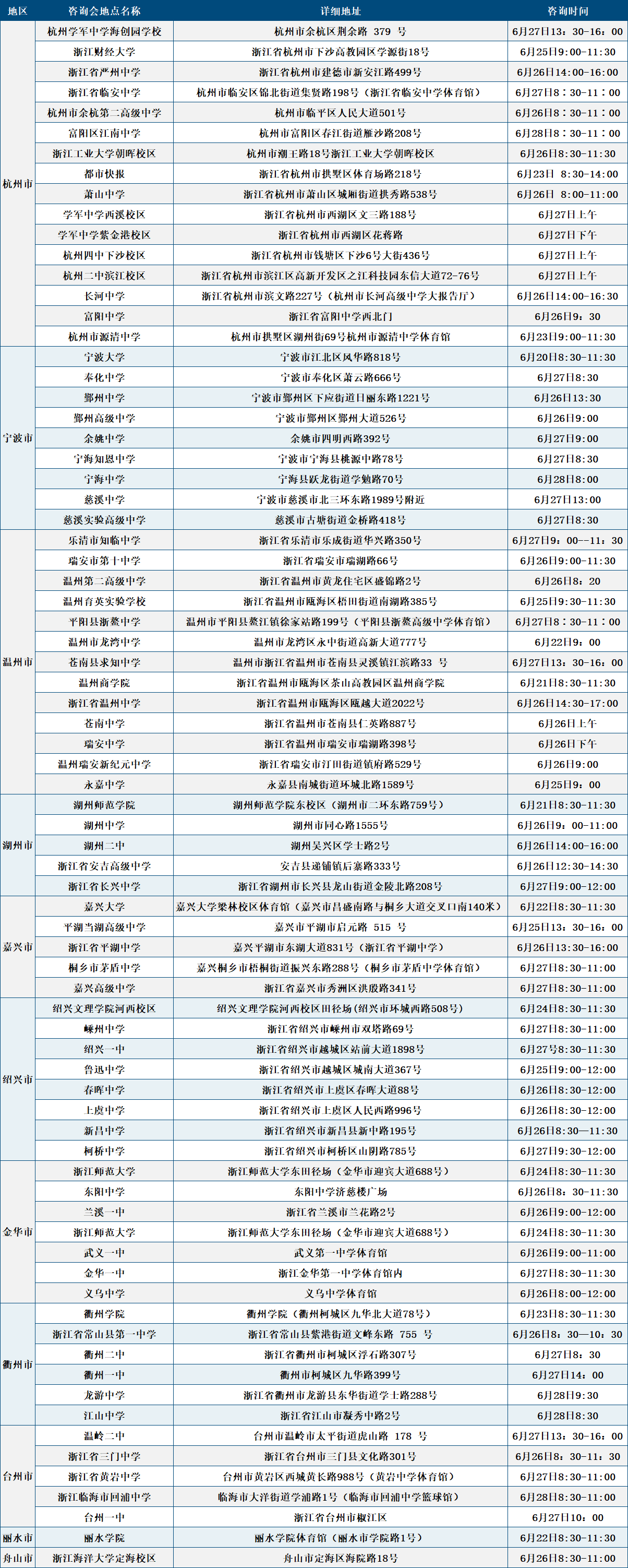 为了能让各位考生和家长更好的了解杭州电子科技大学的办学特色、招考政策、招生专业等情况,学校为此安排了一系列现场咨询,供您参考选择。时间:6月20日—6月28日地点:省内,详见各地咨询信息表 注:如遇特殊情况个别场次有所调整,以实际情况为准。更多场次更新中,请关注公众号信息。