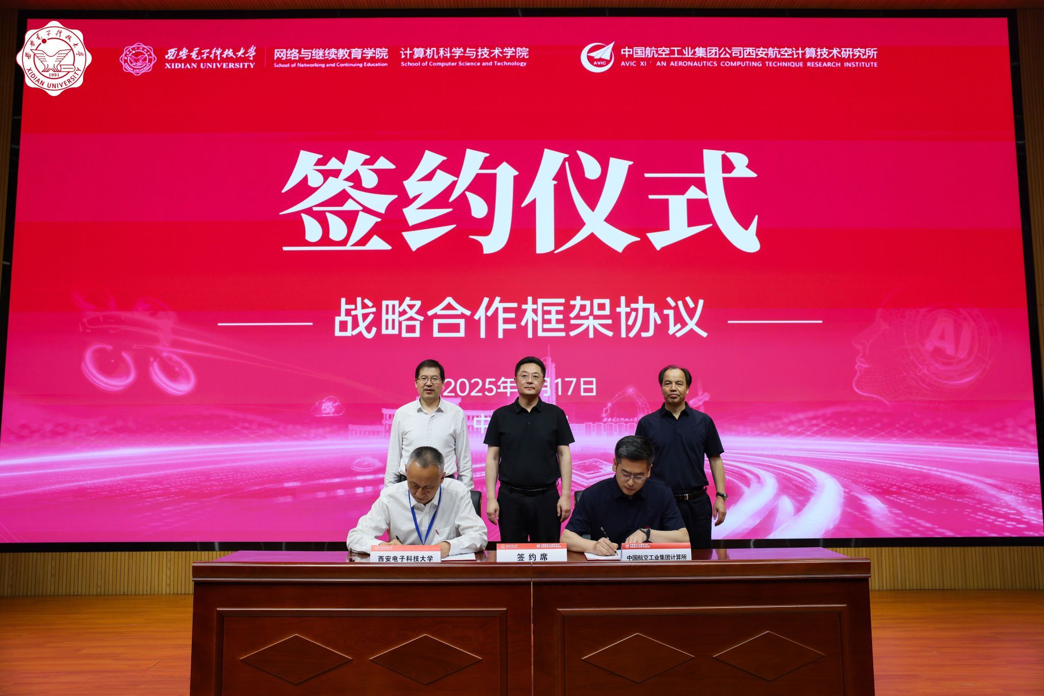 开班仪式上,中国航空工业集团计算所副所长毛宁、学校副校长王泉代表双方签署举行“一院一所四融合”战略协议。