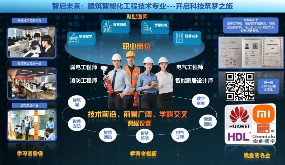 专业概况:建筑智能化工程技术专业致力于服务国家建设和智能化发展需求,是我国最具潜力的朝阳行业之一,也是国家建设部所纳入的建筑领域四大重点紧缺型专业之一。我院侧重智能楼宇和智能家居两个方面。专业聚焦于建筑智能化设计、智能化工程施工与管理、智能化系统安装调试以及工程项目管理等领域。为适应行业需求,专业依托全国多家知名企业打造“精准对接、供需匹配、按需培养和优质就业”的人才培养链条。通过实践探索,着眼于实现“中国制造强国梦”的目标,专注于培养建筑智能化现场工程师、智能家居工程师,注重将理论教学与实际岗位技能相结合,建立与行业需求相匹配的教学、培训和评价标准。