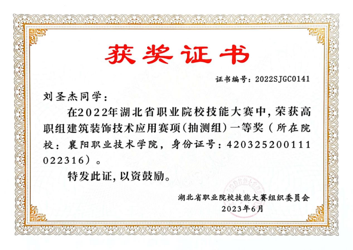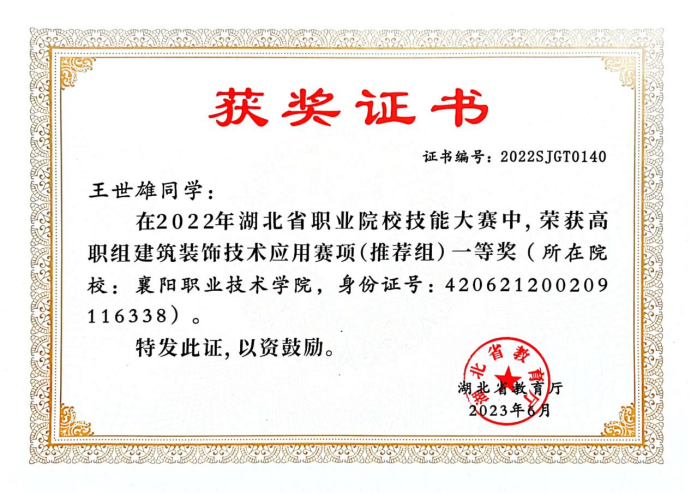 2022 | 湖北省职业院校技能大赛“建筑装饰技术应用”赛项 | 优秀指导教师奖 | |