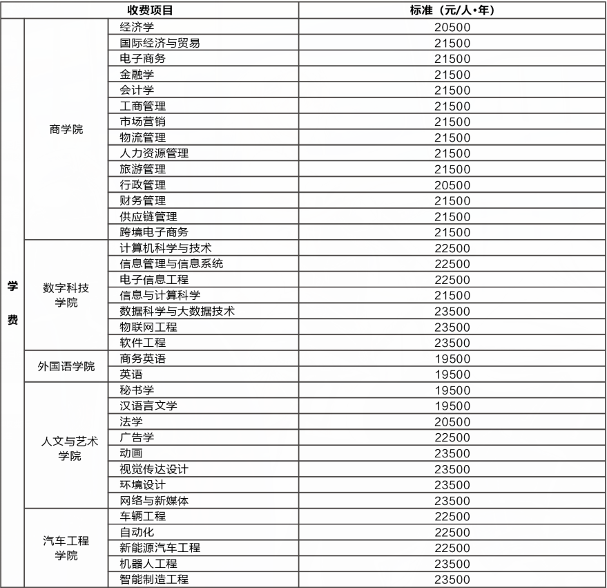 2024年湘潭理工学院收费标准公示