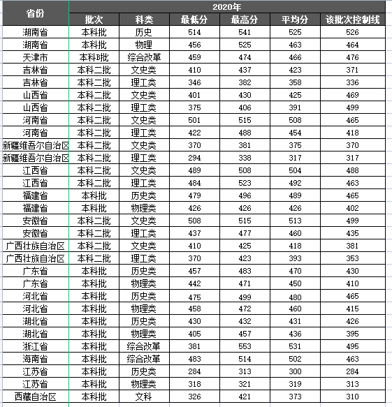 2020年录取分数线