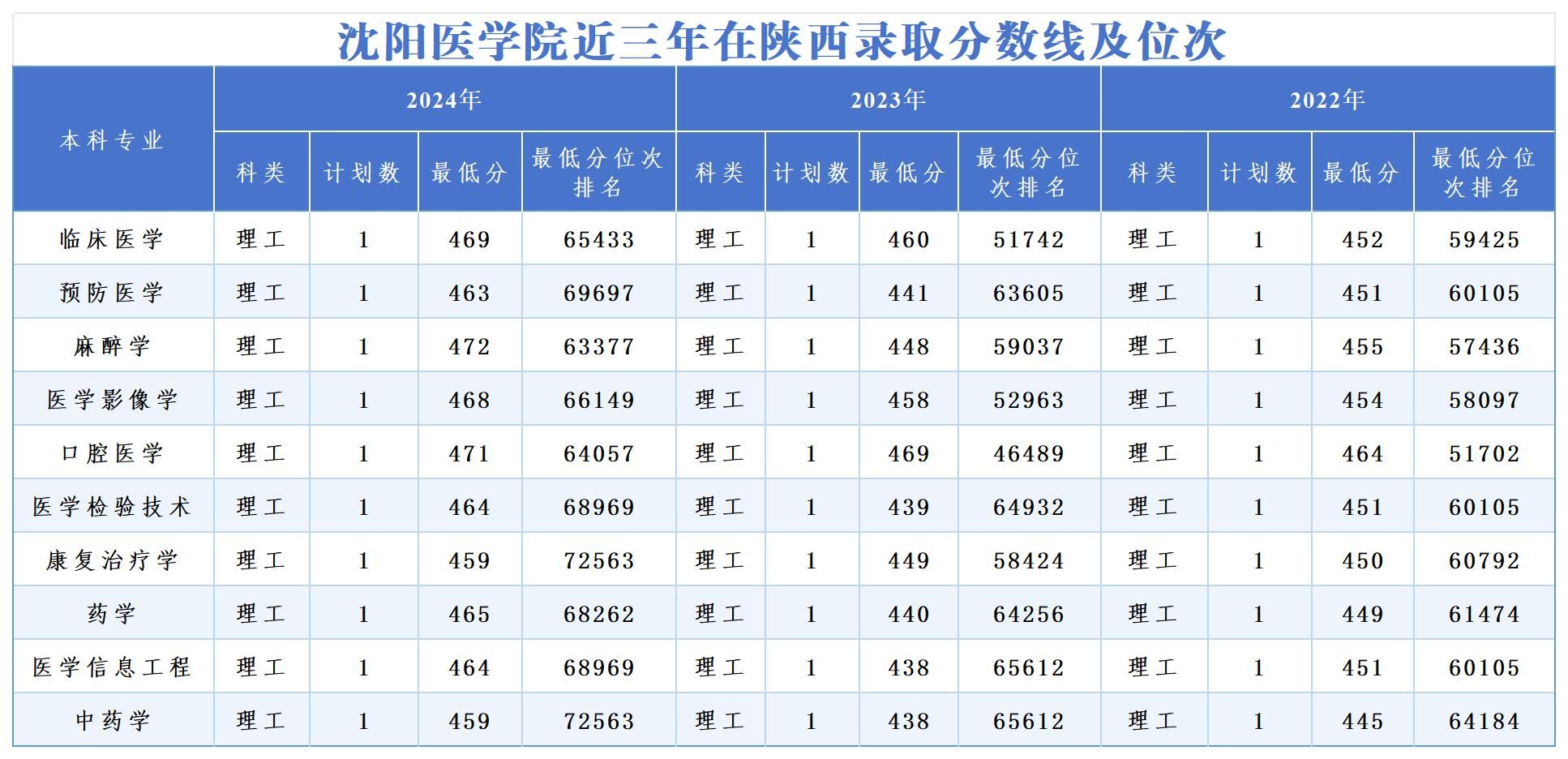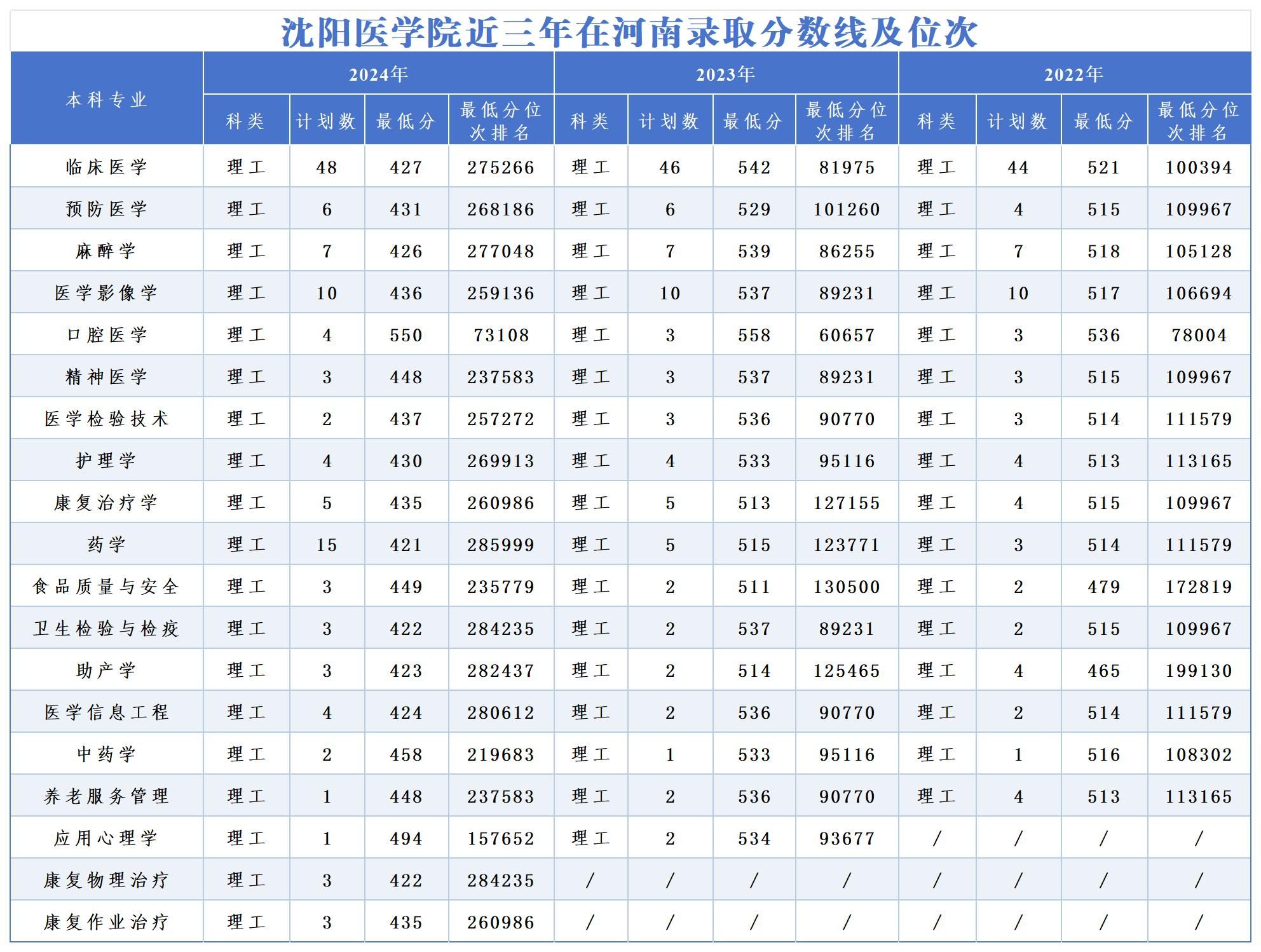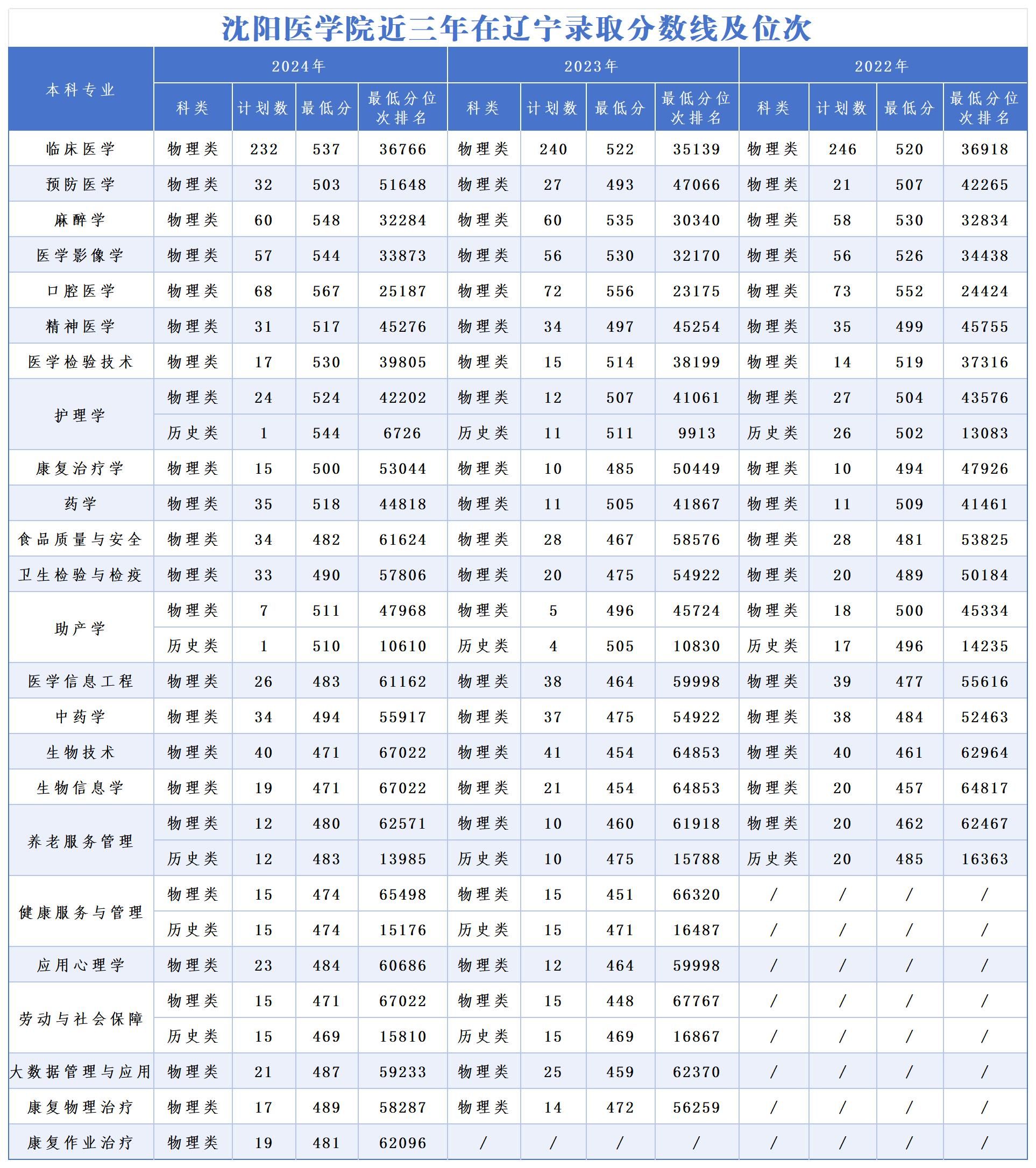 为了方便考生和家长查询我校录取数据,现为各位考生整理好沈阳医学院2022-2024年各省各专业录取分数及位次表,欢迎致电咨询:024-62215829