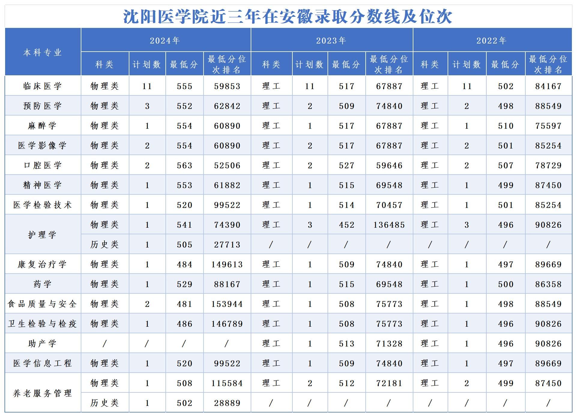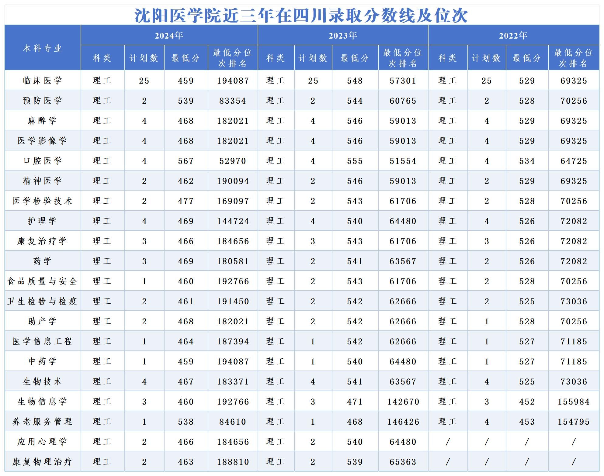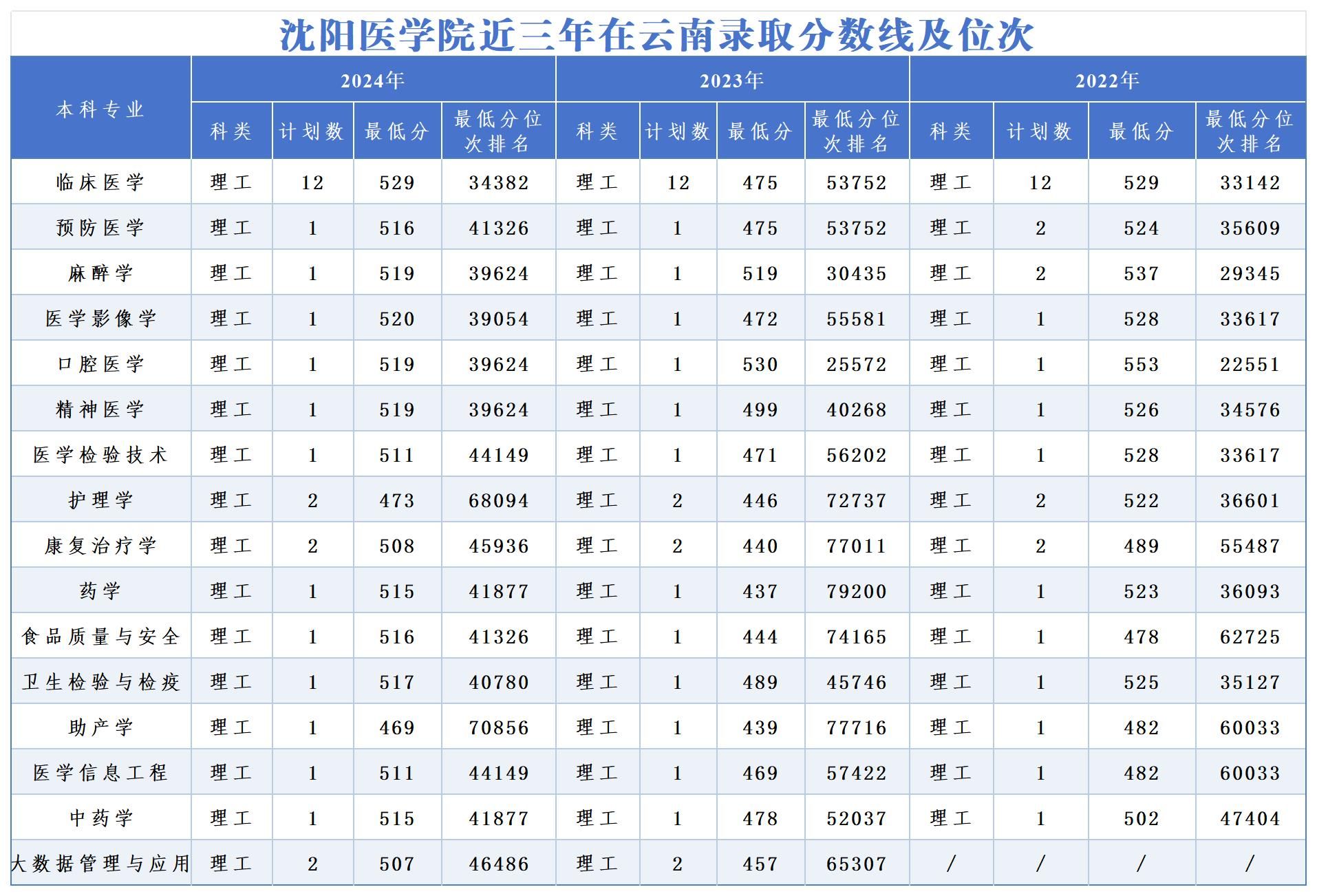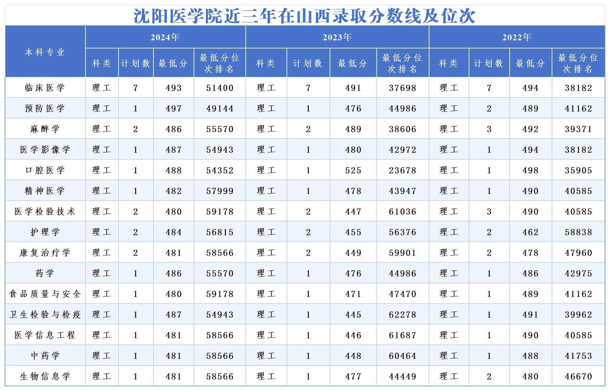 为了方便考生和家长查询我校录取数据,现为各位考生整理好沈阳医学院2022-2024年各省各专业录取分数及位次表,欢迎致电咨询:024-62215829