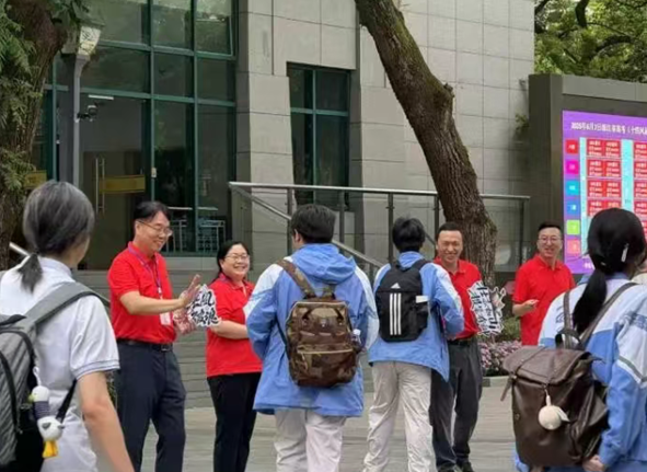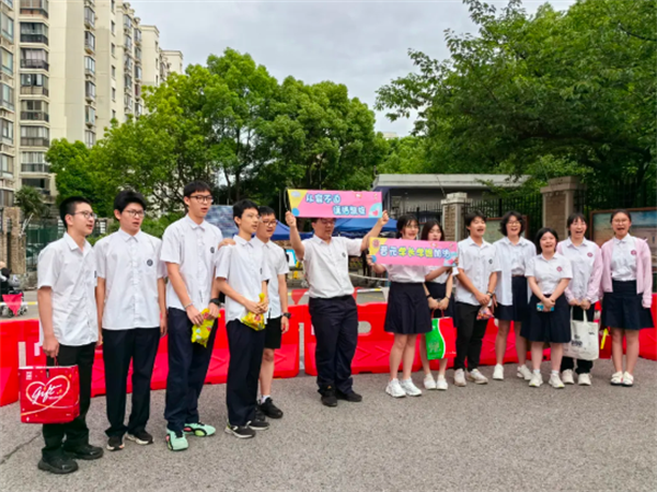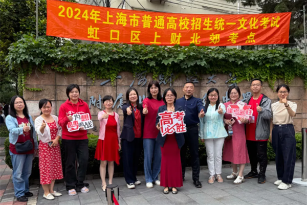 上海市控江中学的老师们向即将迈向考场的高三学子送上祝福。