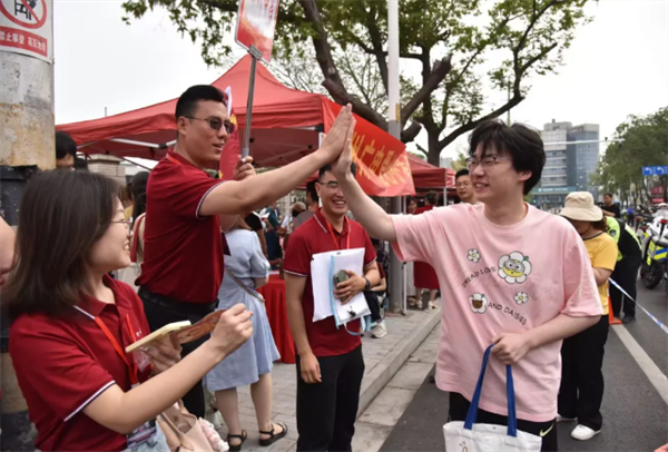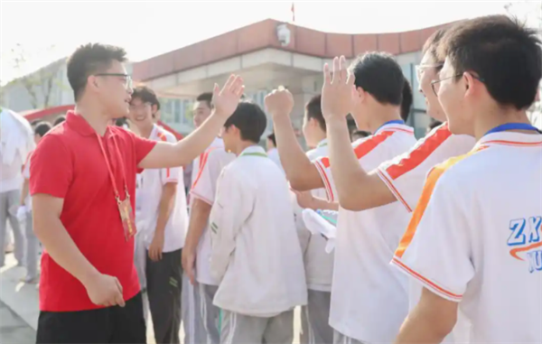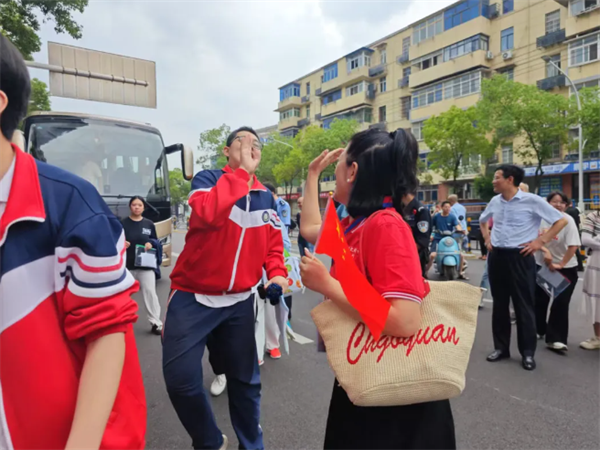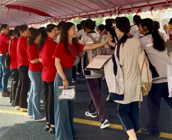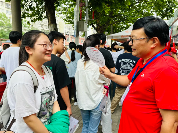 老师正满怀热忱地为考生们加油鼓劲,助力他们勇往直前。