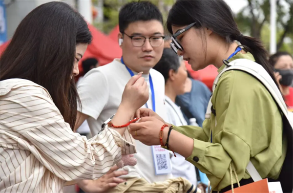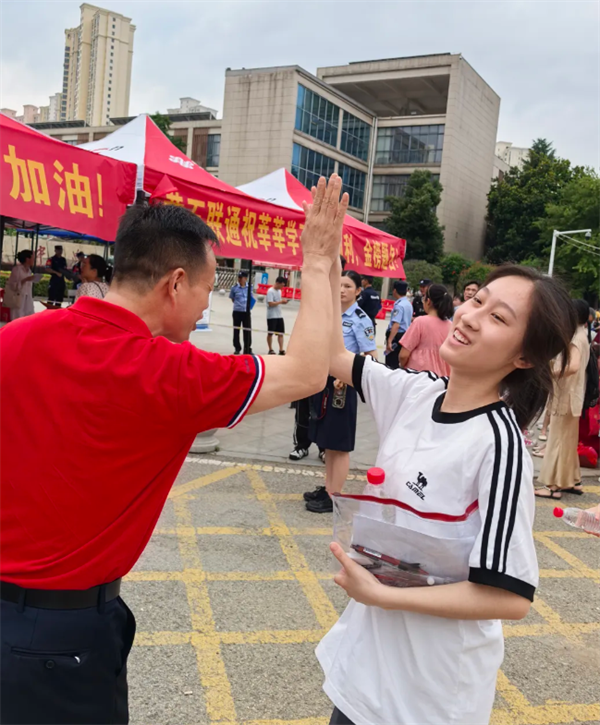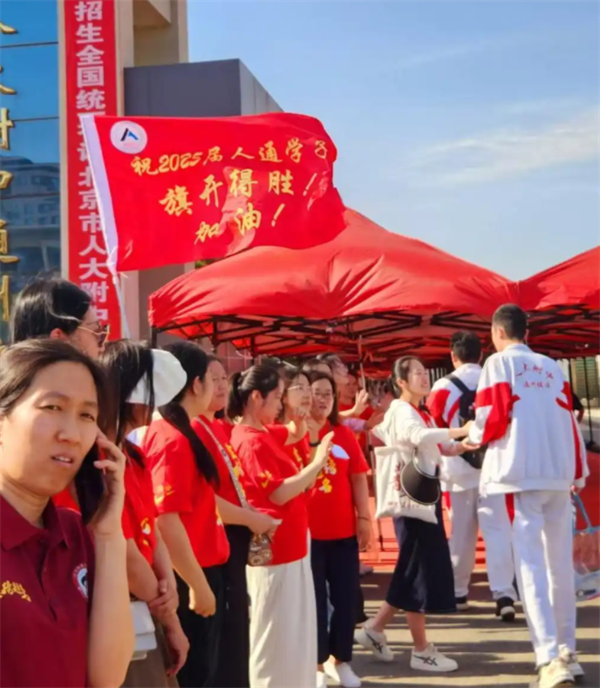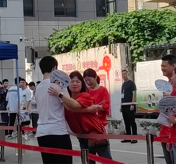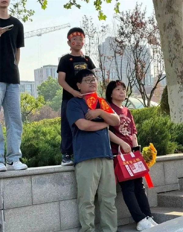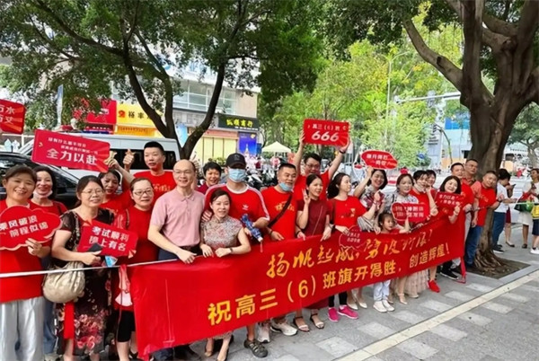 身材红衣,家长们带着最美好的祝福,祝福考生旗开得胜。