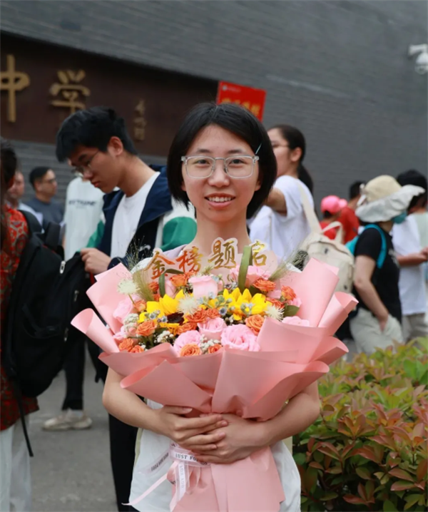 身着旗袍,手捧向日葵为考生打气助威,愿旗开得胜,一举夺魁!