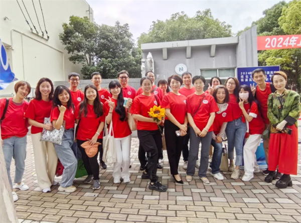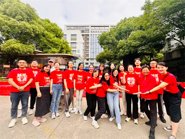 上海市曹杨第二中学语文送考团队为考生加油打气。