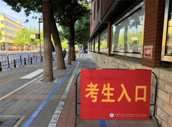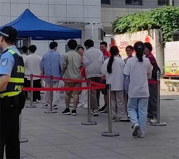 考生们正排着整齐的队伍,依次有序地迈进考场。