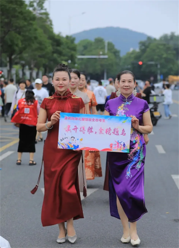 妈妈们,身穿旗袍助力高考,寓意旗开得胜。
