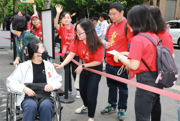 上海市中国中学考点为因崴脚而行动不便的考生准备了轮椅,提供便利。