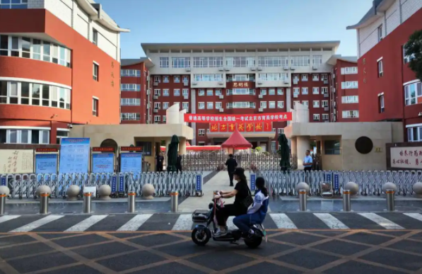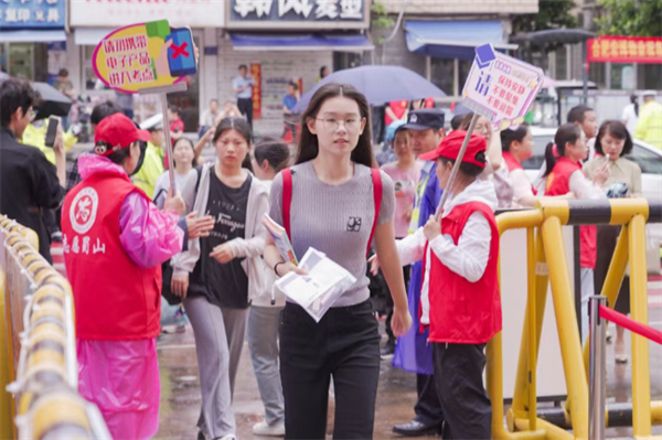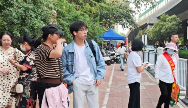 大批考生正脚步匆匆,朝着考场的方向奔赴而去。