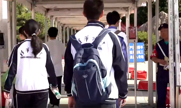 考生迈着沉稳的步伐,从容且自信地踏入考场。