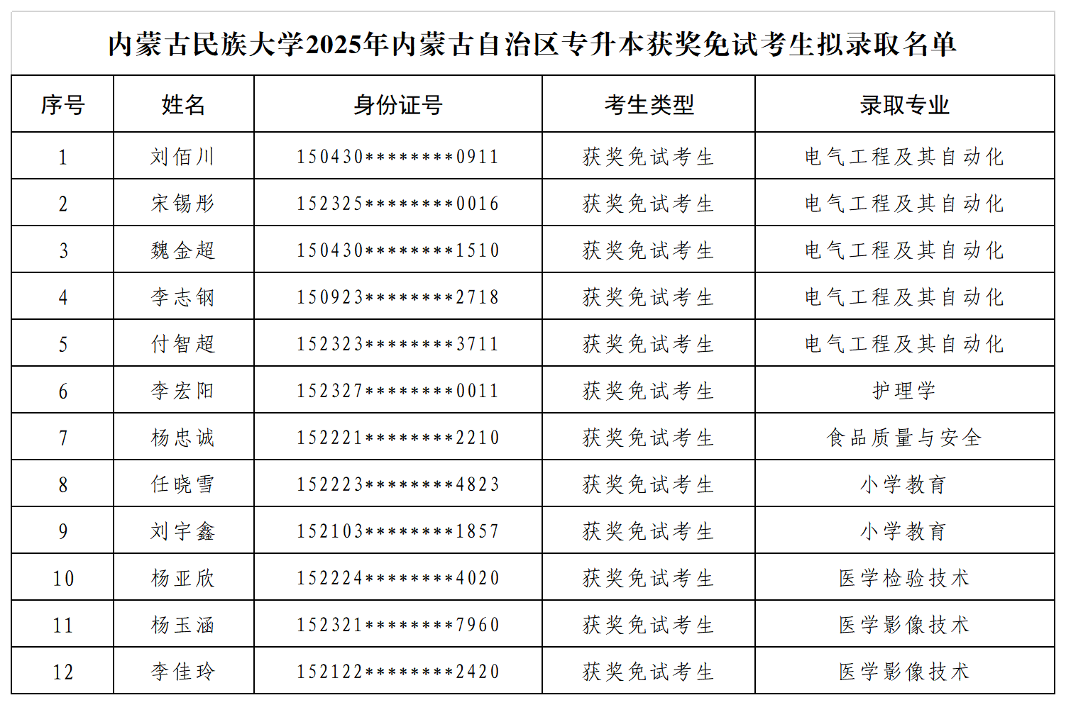 根据内蒙古自治区教育考试院《2025年内蒙古自治区普通高等教育专升本考试招生录取工作公告》要求,现将我校2025年内蒙古自治区普通高等教育专升本获奖免试考生拟录取结果进行公示,公示期:5月22日-27日,咨询电话:0475-8313584。
