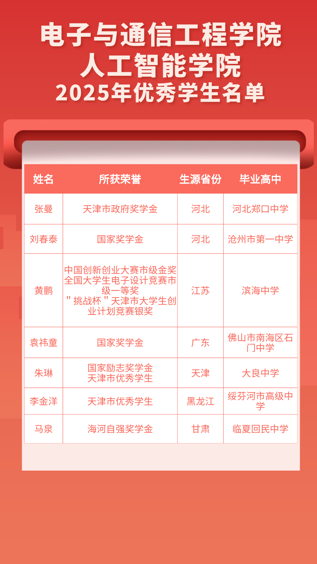 黄鹏,天津师范大学电子信息科学与技术专业2025届毕业生,曾获国家奖学金、全国电子设计竞赛市级一等奖。