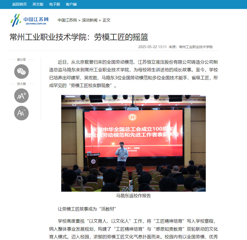 中国江苏网:常州工业职业技术学院:劳模工匠的摇篮