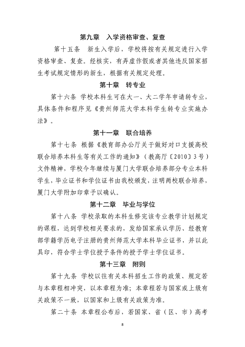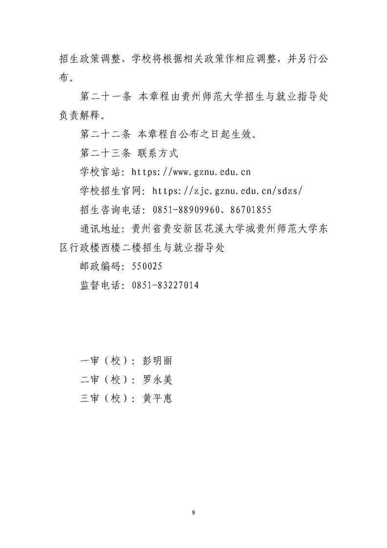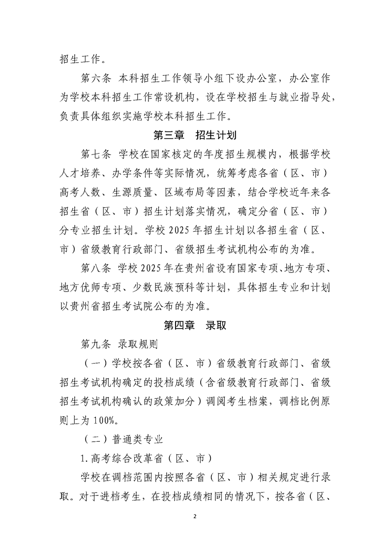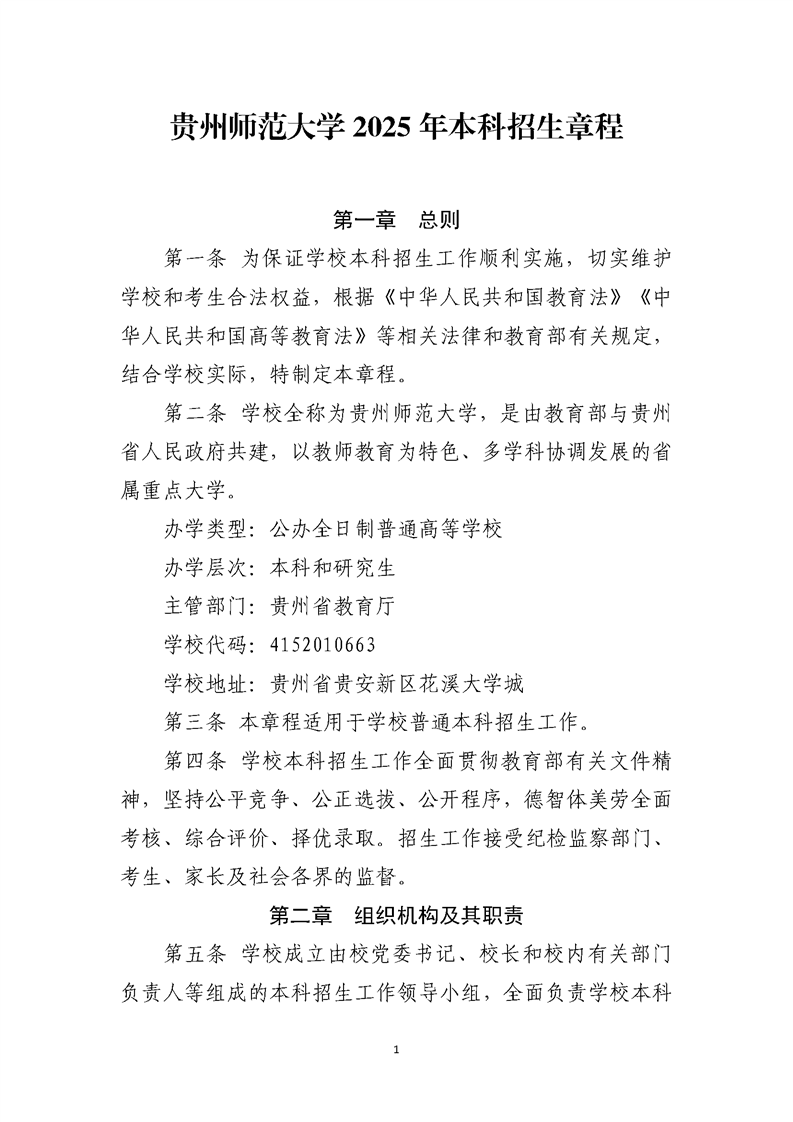 贵州师范大学2025年本科招生章程