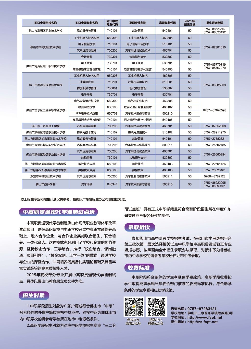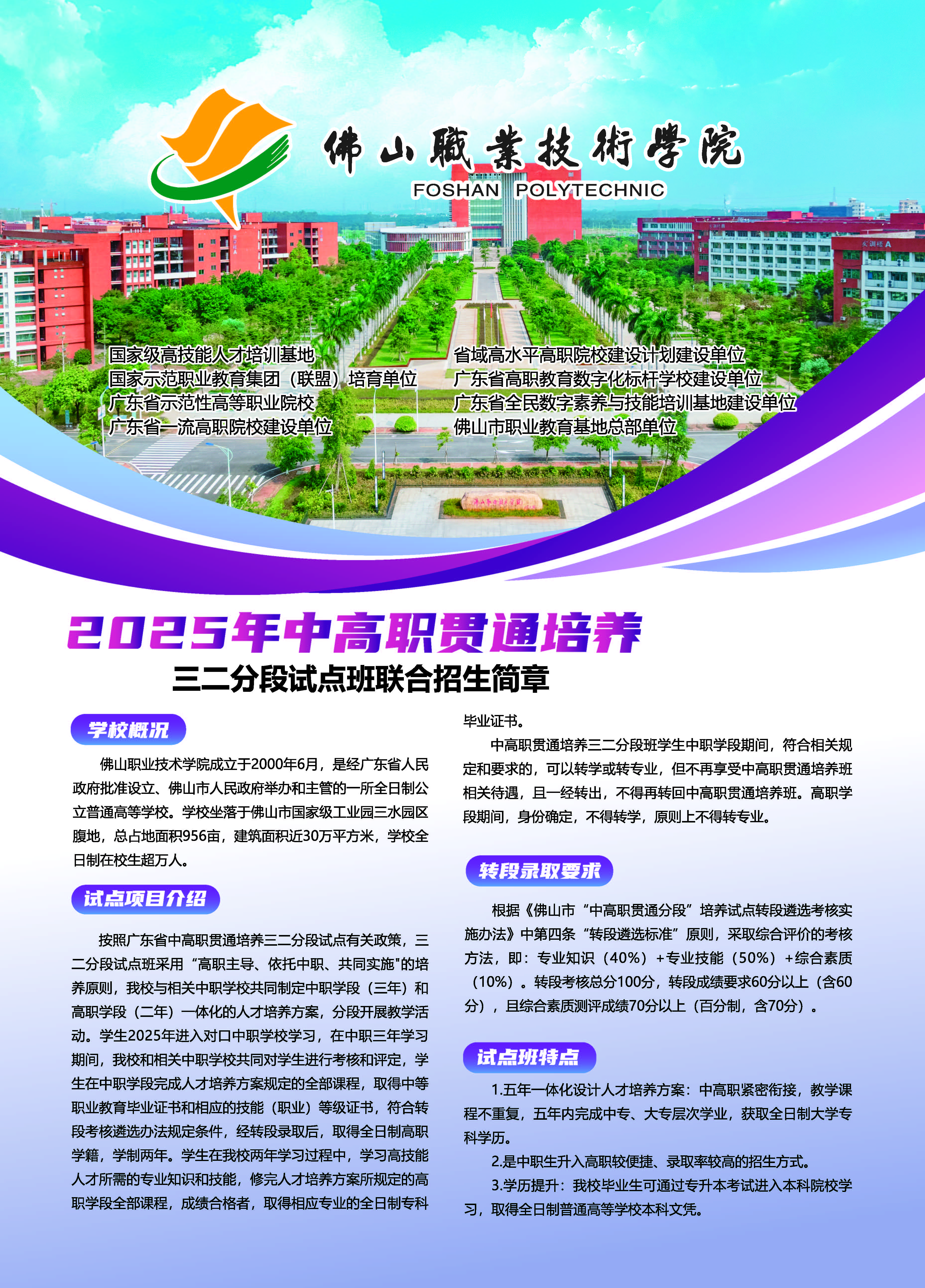 佛山职业技术学院2025年中高职贯通培养“三二分段”试点班联合招生简章