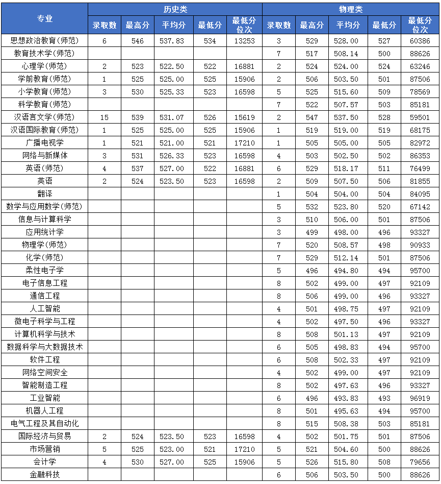 2024年我校湖南省各专业第一次投档录取情况(国家专项)