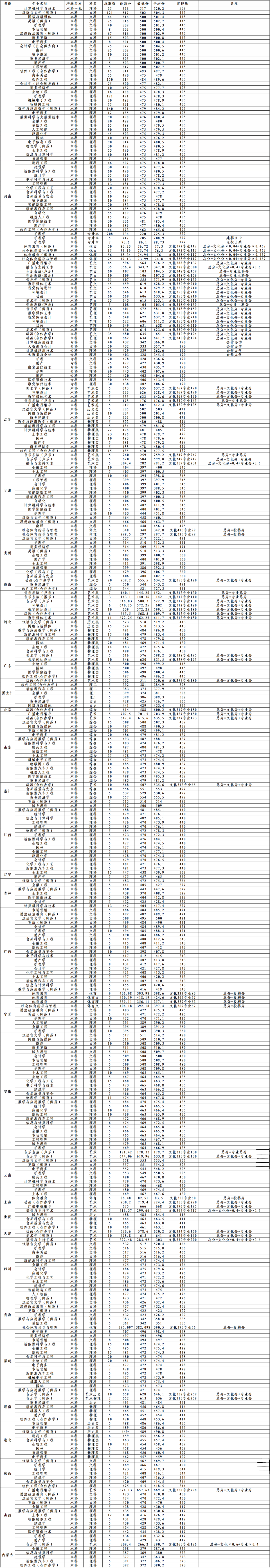黄淮学院2022年录取情况统计