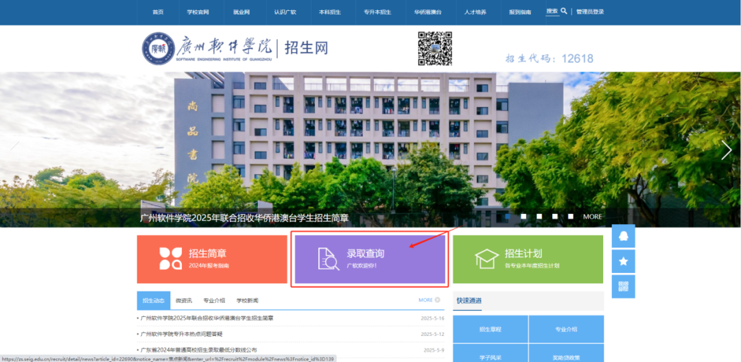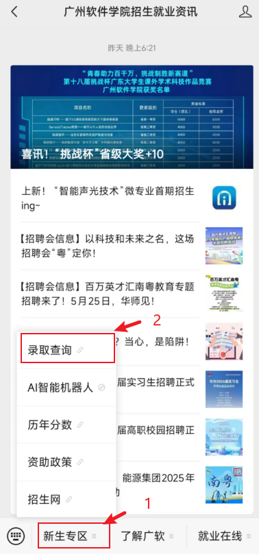 1.点击进入“广州软件学院招生就业资讯”微信公众号