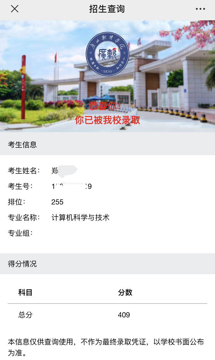 (注意:录取信息以广东省教育考试院公布的数据为准,查询数据将会实时更新)