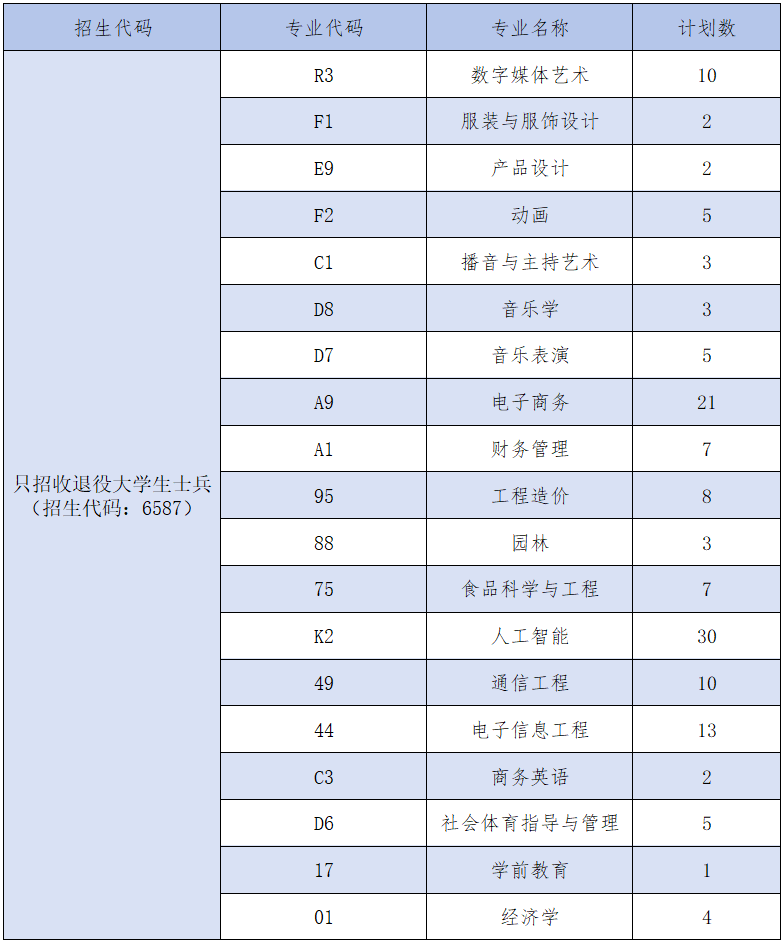 商丘学院2025年专升本各专业招生计划(含退役大学生士兵)