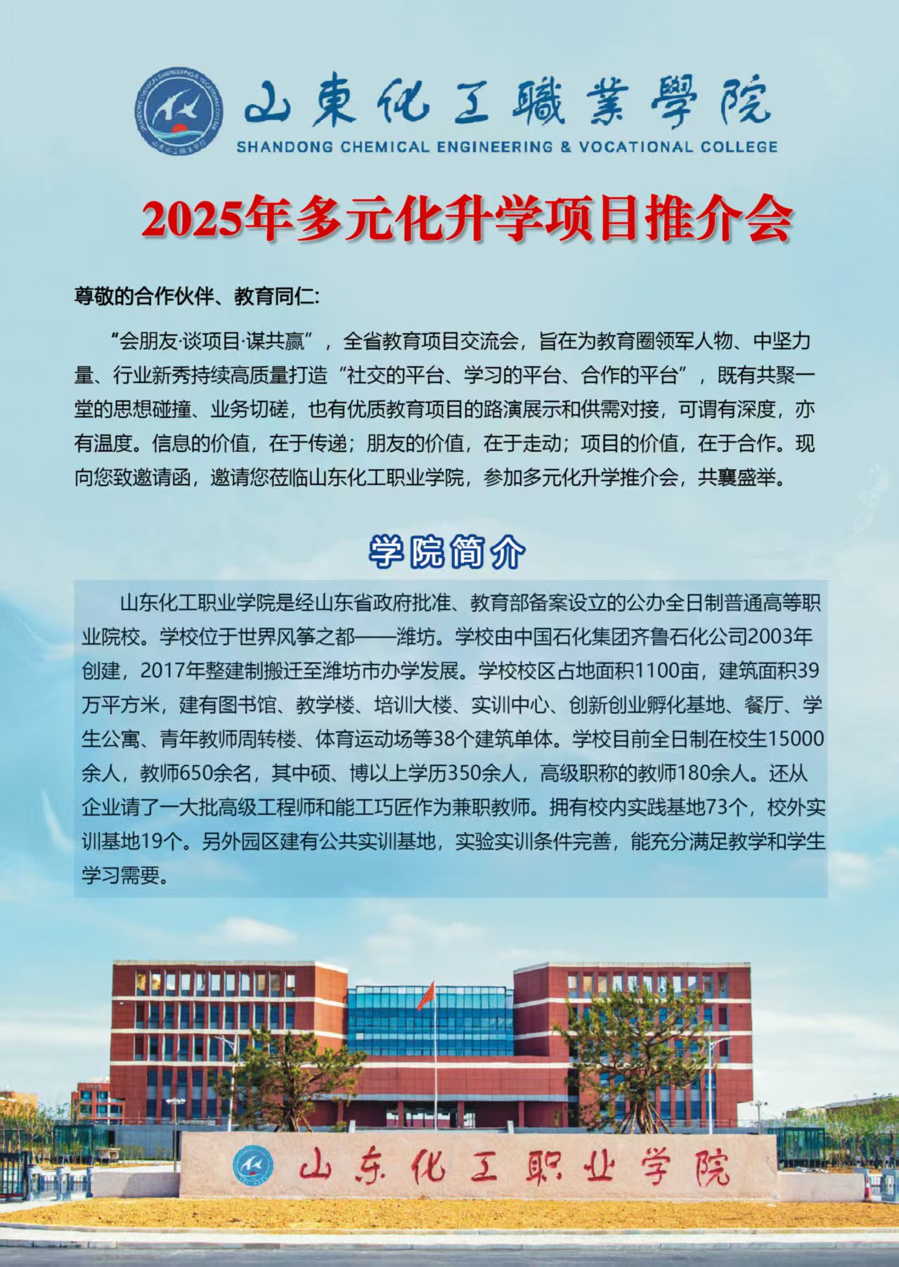 山东化工职业学院2025年多元化升学项目推介会