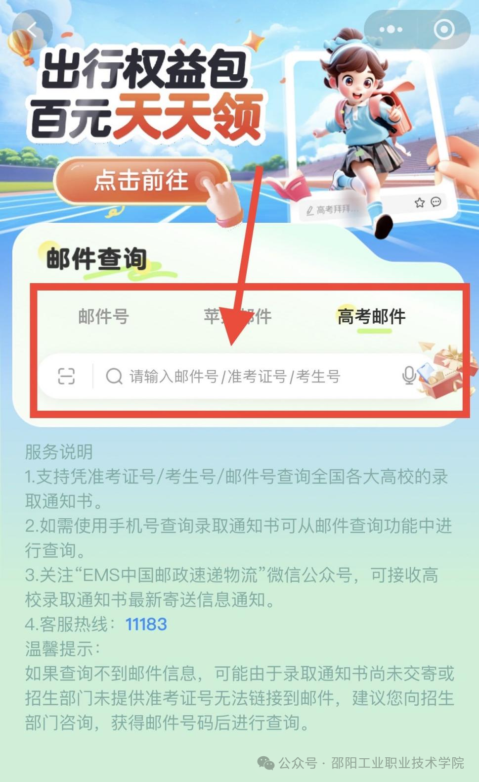 我校单招录取考生的录取通知书已于2024年8月21日下午通过邮政EMS专用通道向你们飞速奔来。考生可在微信小程序“EMS中国邮政速递物流”通过本人考生号(考生号为:2443+10位数考生号)或准考证号查询自己的录取通知书邮寄状态,有需要临时修改地址或联系方式的同学,请抓紧时间与快递员联系修改。统招录取考生的录取通知书预计将于8月25日左右寄出,具体时间请持续关注我校官网或者公众号。