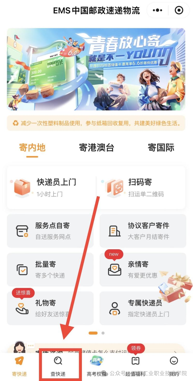 1、微信搜索“EMS中国邮政速递物流”,进入小程序